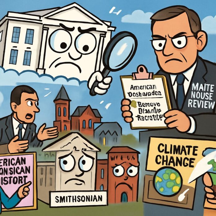 The review was announced in an August 12, 2025 letter to Smithsonian Secretary Lonnie Bunch signed by senior White House officials including Office of Management and Budget Director Russell Vought. It specifically targets eight Smithsonian museums in Washington D.C., including the National Museum of African American History and Culture, National Air and Space Museum, and National Museum of American History. The administration framed the effort as ensuring ‘historically accurate, uplifting, and inclusive portrayals’ of American history.