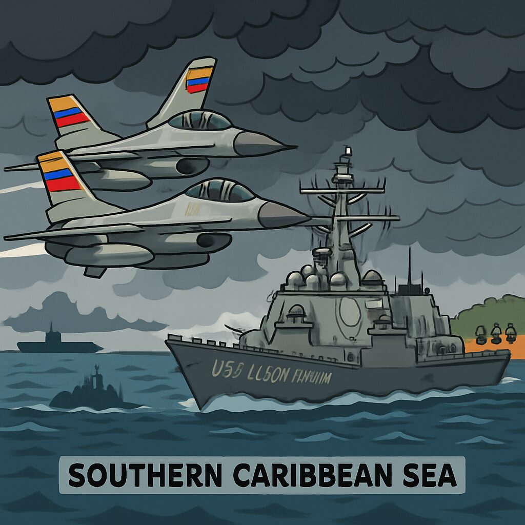 In a provocative aerial maneuver, two Venezuelan military aircraft flew near a US Navy destroyer in international waters, escalating tensions between the two nations. The Pentagon condemned the action as a deliberate attempt to interfere with US counter-narcotics operations.