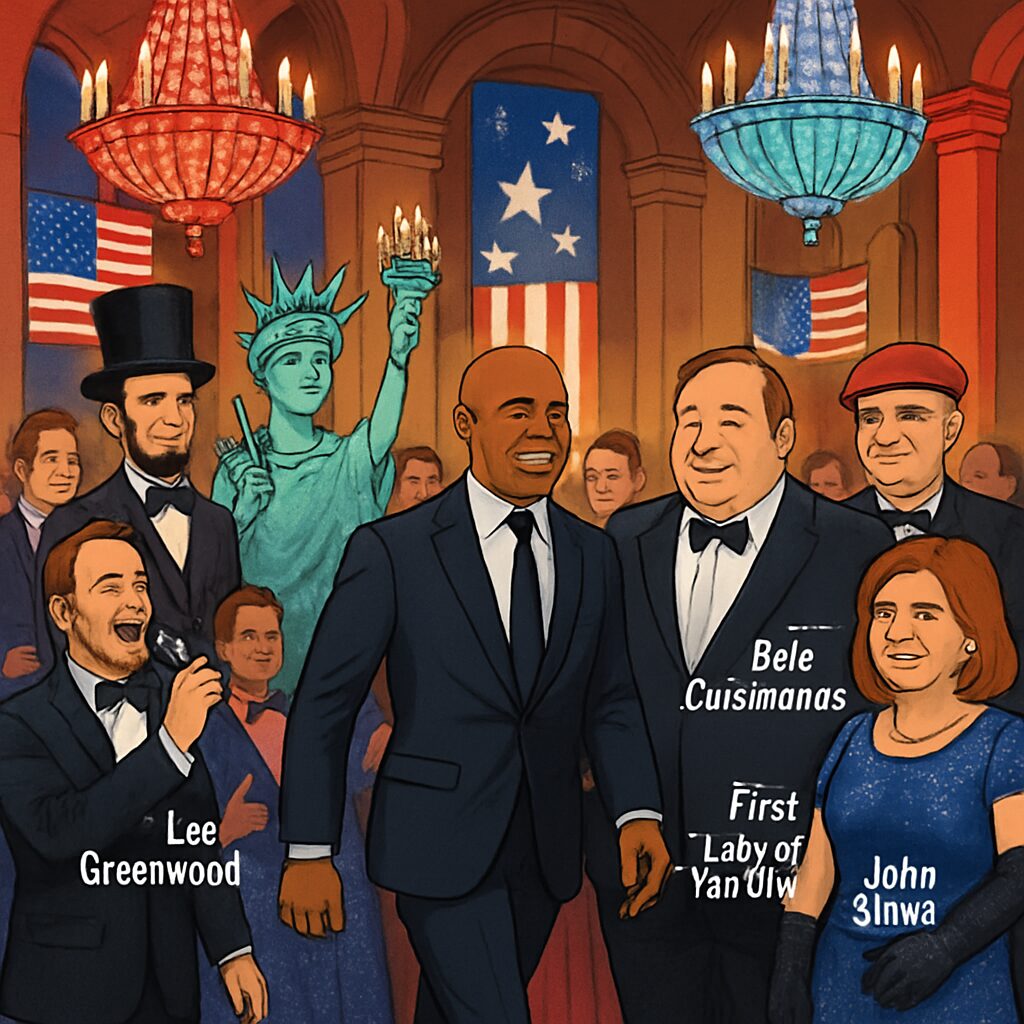 The evening was marked by a ‘black tie glamour with patriotic sparkle’ dress code, with chandeliers at the venue glowing in red, white, and blue. Lookalikes of American icons such as Abraham Lincoln and the Statue of Liberty mingled with guests, creating a festive and nationalistic atmosphere. Adams arrived directly after a speech at Gracie Mansion where he defiantly stated his intention to continue his campaign, making his presence at the party a statement of resilience.