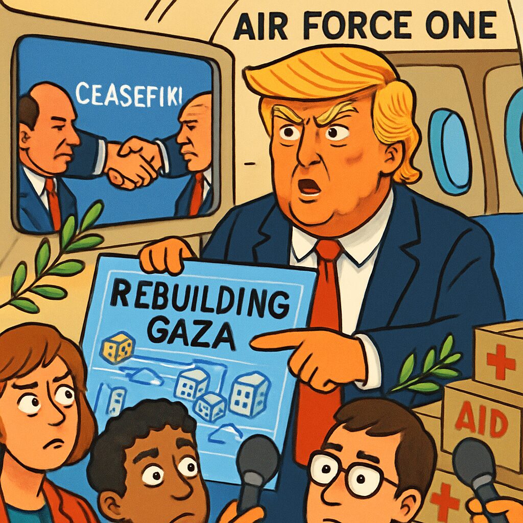 On October 14, 2025, President Trump returned from a summit in Egypt where world leaders signed a ceasefire agreement for Gaza. The deal, brokered with Egyptian President Abdel Fattah al-Sisi, includes hostage releases and aid delivery. Aboard Air Force One, Trump told reporters that his focus is on reconstruction, not political solutions like statehood.