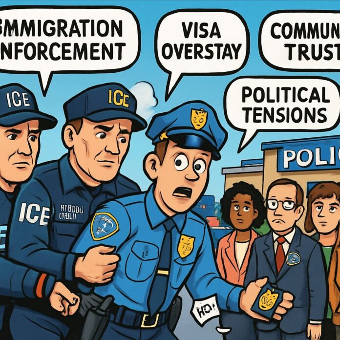U.S. Immigration and Customs Enforcement agents arrested a police officer in the Chicago suburb of Hanover Park on Thursday, accusing him of being an unlawful immigrant from Montenegro who overstayed his visa for 10 years. The arrest occurred as part of Operation Midway Blitz, a targeted immigration enforcement surge in Illinois.