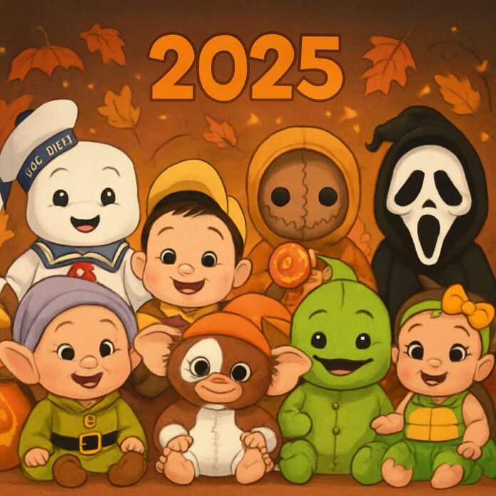 Gremlins enthusiasts can opt for the Gizmo costume, which dresses babies as the beloved Mogwai with oversized ears and a soft brown and white jumpsuit. This outfit captures Gizmo’s iconic look while ensuring warmth and coziness for cooler autumn evenings. Parents are reminded of the fun “don’t get them wet” rule from the movies, adding an interactive element to the costume choice.