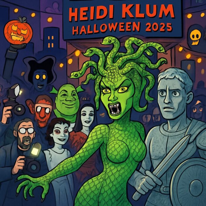 On October 31, 2025, Heidi Klum arrived at her annual Halloween bash at the Hard Rock Hotel in New York City, transforming into the mythical Gorgon Medusa. Her costume included a vibrant green bodysuit with scales, a headpiece adorned with several squirming snakes, and prosthetic fangs, creating a fearsome yet fascinating appearance. She described her goal as making the costume “really ugly,” and she believed her team had succeeded in capturing the essence of the legend. The supermodel’s entrance was a highlight of the evening, with photographers and fans eagerly awaiting her reveal after she teased snippets on social media throughout the day.