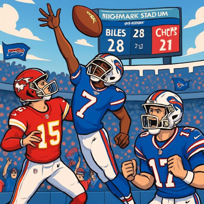 In a dramatic finish, the Buffalo Bills defeated the Kansas City Chiefs 28-21, with rookie Maxwell Hairston batting down Patrick Mahomes’ Hail Mary pass in the final seconds to secure the victory. Josh Allen threw for one touchdown and ran for two more, outdueling Mahomes in a key AFC matchup that bolstered Buffalo’s playoff hopes.