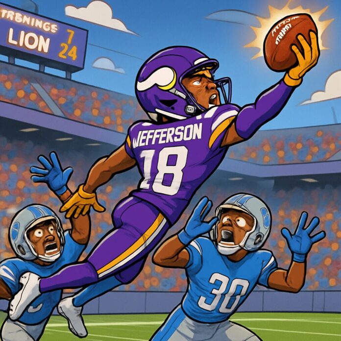In a thrilling NFC North matchup, Justin Jefferson’s incredible one-handed touchdown reception helped the Minnesota Vikings secure a 27-24 win over the Detroit Lions. The catch, which came on the opening drive, highlighted Jefferson’s elite talent and provided a crucial early lead.