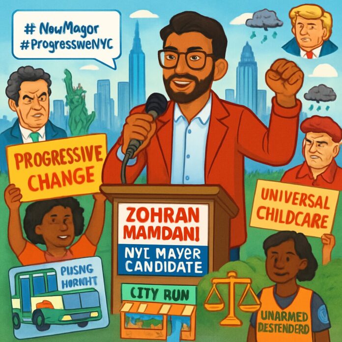 Mamdani’s campaign centers on ambitious progressive policies aimed at addressing the city’s cost-of-living crisis, which he identifies as the top issue. He promises universal childcare, rent freezes in subsidized housing, free public buses, and city-run grocery stores to alleviate financial burdens on residents. To fund these initiatives, he proposes taxing corporations and millionaires to raise an estimated $9 billion, though critics like the libertarian Cato Institute question the financial feasibility. He would need support from the state legislature and Governor Kathy Hochul, who has endorsed him but opposes income tax increases.
