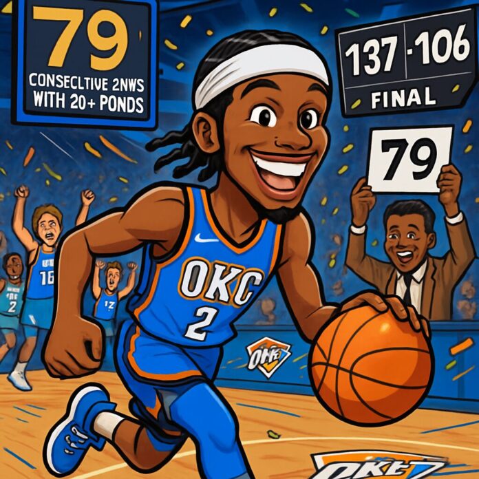 Oklahoma City Thunder guard Shai Gilgeous-Alexander etched his name into the NBA record books on Sunday, tying Oscar Robertson’s longstanding mark of 79 consecutive games with at least 20 points scored. The milestone came during a dominant 137-106 victory over the New Orleans Pelicans, propelling the Thunder to a perfect 7-0 start to the season.