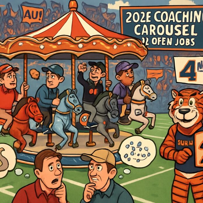Auburn University’s football coaching position is ranked fourth among the currently open Power 4 jobs, as the college football coaching carousel sees unprecedented activity with 12 vacancies. This ranking comes in the wake of Hugh Freeze’s dismissal after a disappointing tenure, highlighting Auburn’s potential and challenges in the competitive SEC landscape.