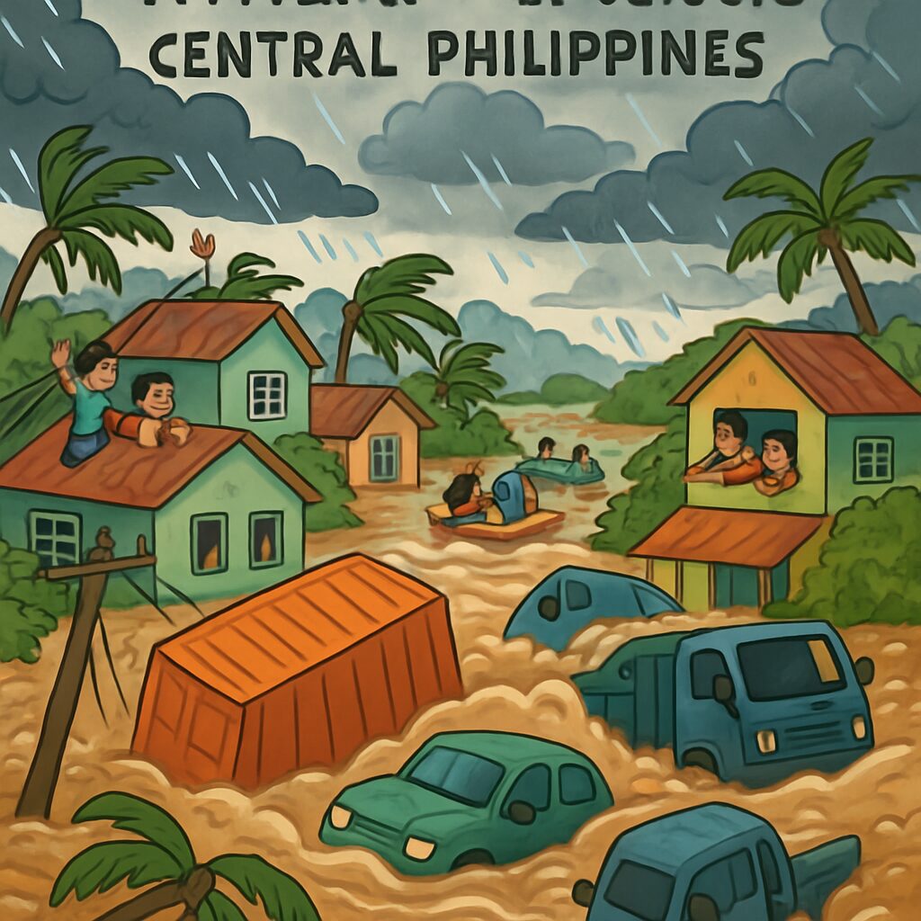 Typhoon Kalmaegi struck the central Philippines on Tuesday, November 4, 2025, bringing torrential rains and strong winds that triggered severe flooding across several provinces, particularly in Cebu. The typhoon, moving westwards through the Visayan island chain, had winds of 130 kilometers per hour and gusts up to 180 kph, toppling trees and downing power lines. Entire towns were inundated, and the rapid rise of floodwaters caught many residents off guard, forcing them to seek higher ground for safety.