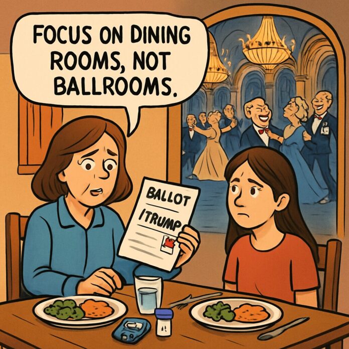 In voicing her concerns, the voter coined the phrase “Focus on dining rooms, not ballrooms,” drawing a sharp contrast between household struggles and political extravagance. Dining rooms symbolize the real-world issues of food security, health, and family stability, while ballrooms represent opulent, detached political events. This metaphor resonates with many Americans who feel overlooked by leaders prioritizing symbolism over substance. Her message is a plea for empathy and actionable policies that directly improve daily lives.