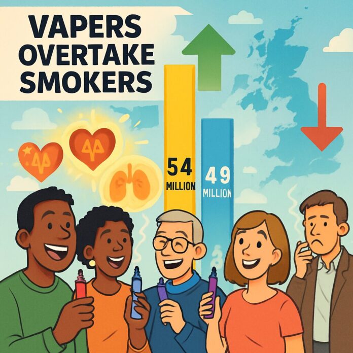 For the first time in Great Britain, the number of adults using e-cigarettes has exceeded those smoking traditional cigarettes, according to recent data from the Office for National Statistics. This historic shift highlights the changing landscape of nicotine consumption, with vaping becoming more prevalent as smoking rates continue their long-term decline.