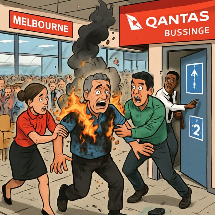 On Thursday morning, November 6, 2025, a shocking incident occurred in the international Qantas business lounge at Melbourne Airport when a portable power bank ignited while in a man’s pocket. The device burst into flames, causing his clothing to catch fire and filling the area with smoke. Staff quickly assisted the man into a shower to extinguish the flames, while other travelers were evacuated due to the dense smoke and strong odor.
