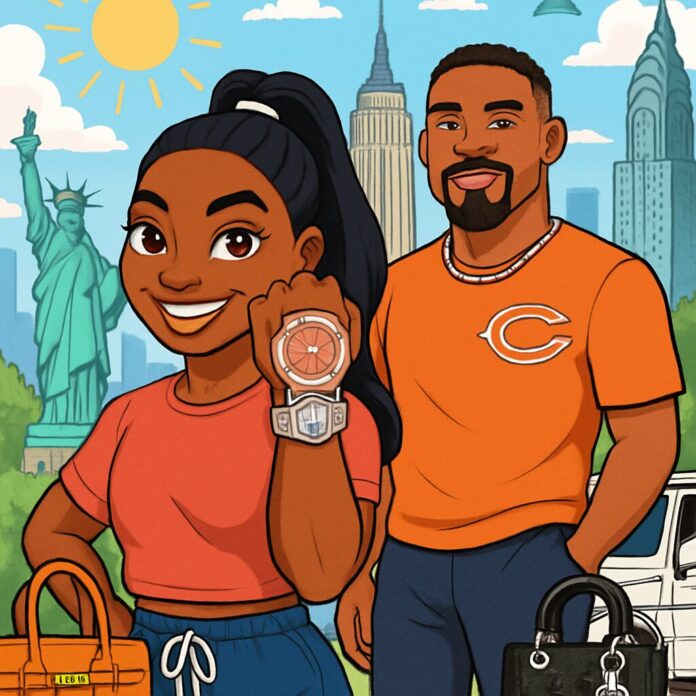 The watch retails for approximately $50,000 and is part of Audemars Piguet’s prestigious collection, known for its high craftsmanship and exclusive designs. Biles shared the images while visiting New York City with her husband, Chicago Bears safety Jonathan Owens, highlighting the couple’s penchant for luxury items during their travels. This new accessory adds to her growing portfolio of high-end fashion, which has become almost as notable as her athletic achievements.