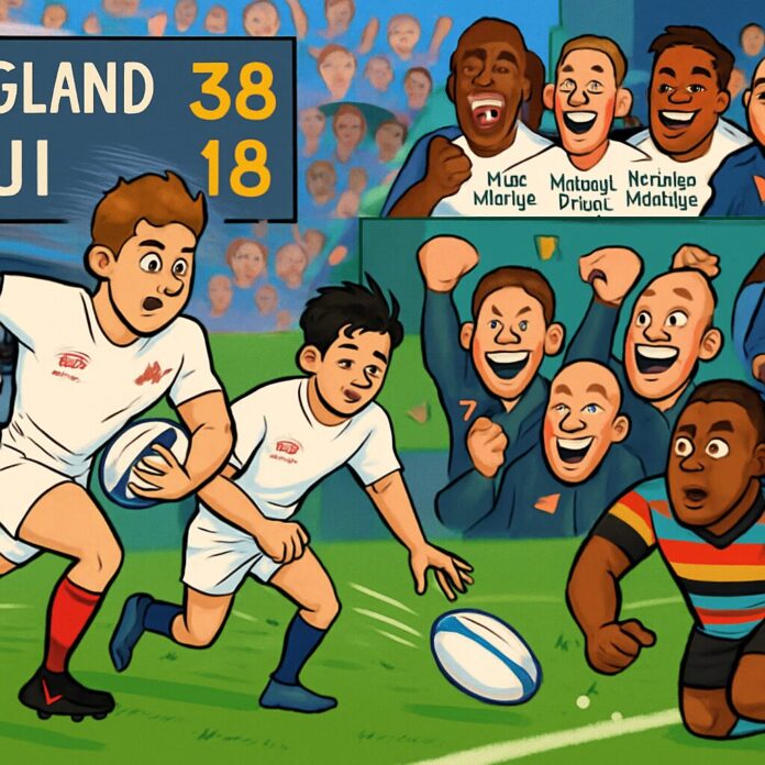England’s rugby team extended their winning streak to nine matches with a 38-18 victory over Fiji, highlighted by Henry Arundell’s electrifying try and a dominant bench performance that sealed the win in the final quarter.