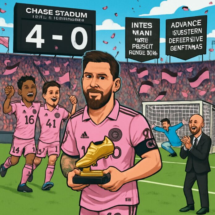 Lionel Messi’s first-half brace propelled Inter Miami to a decisive 4-0 victory over Nashville SC, clinching the club’s inaugural playoff series win and advancing to the Eastern Conference semifinals.
