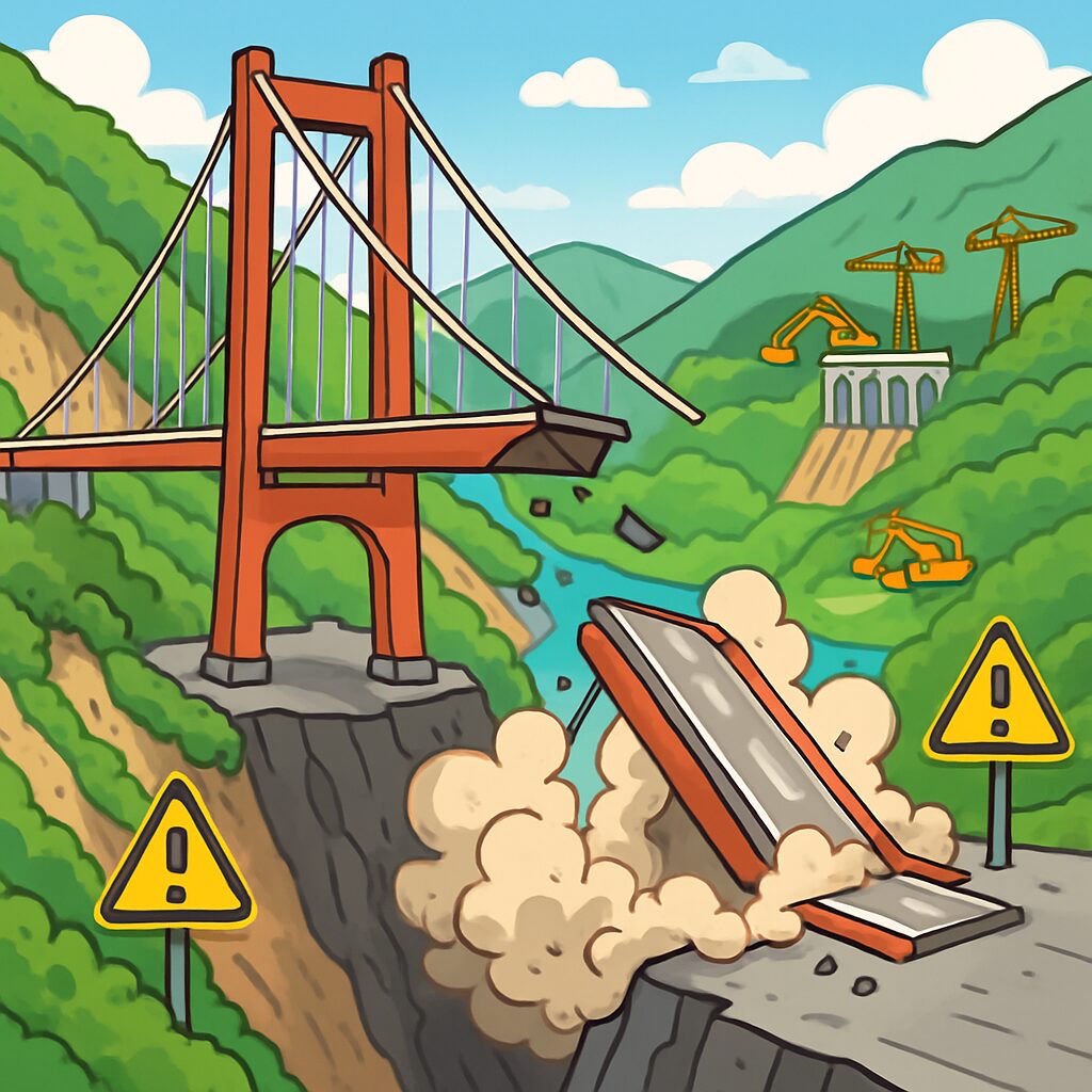 The bridge is situated near the Shuangjiangku Hydropower Station, which is under construction on the Dadu River. When completed, this dam will be the tallest in the world, underscoring the region’s importance for infrastructure development. However, the area is known for its geological instability, which may have been underestimated in the bridge’s design and construction, highlighting the risks of building in seismically active zones.