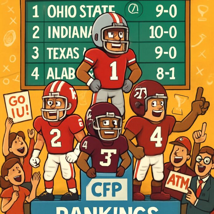 The top five teams remained identical, with Ohio State (9-0) leading, Indiana (10-0) in second, Texas A&M (9-0) third, Alabama (8-1) fourth, and Georgia (8-1) fifth. This consistency reflects the committee’s confidence in these programs’ performances, despite close games in recent weeks. For instance, Ohio State’s offensive dominance and defensive strength have kept them at number one, while Indiana’s perfect record and key victories have secured their high position.