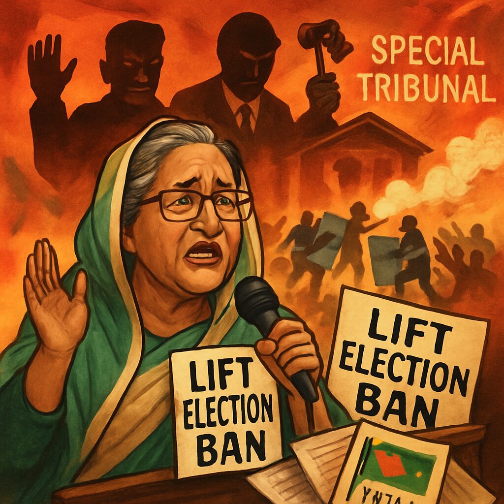 Bangladesh’s former prime minister Sheikh Hasina, charged with crimes against humanity, has called for the lifting of a ban on her political party ahead of upcoming elections. Speaking from exile in India, she denied the allegations against her as a special tribunal prepares to deliver a verdict that could include the death penalty.