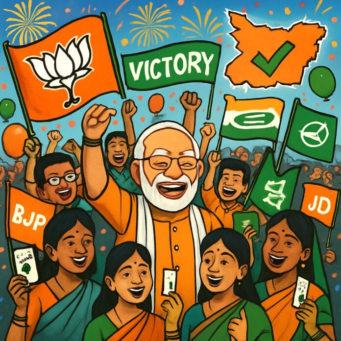 In a decisive political outcome, Indian Prime Minister Narendra Modi’s coalition has celebrated a massive win in the Bihar state assembly elections, securing over 200 seats and reinforcing the ruling party’s dominance ahead of key national polls.