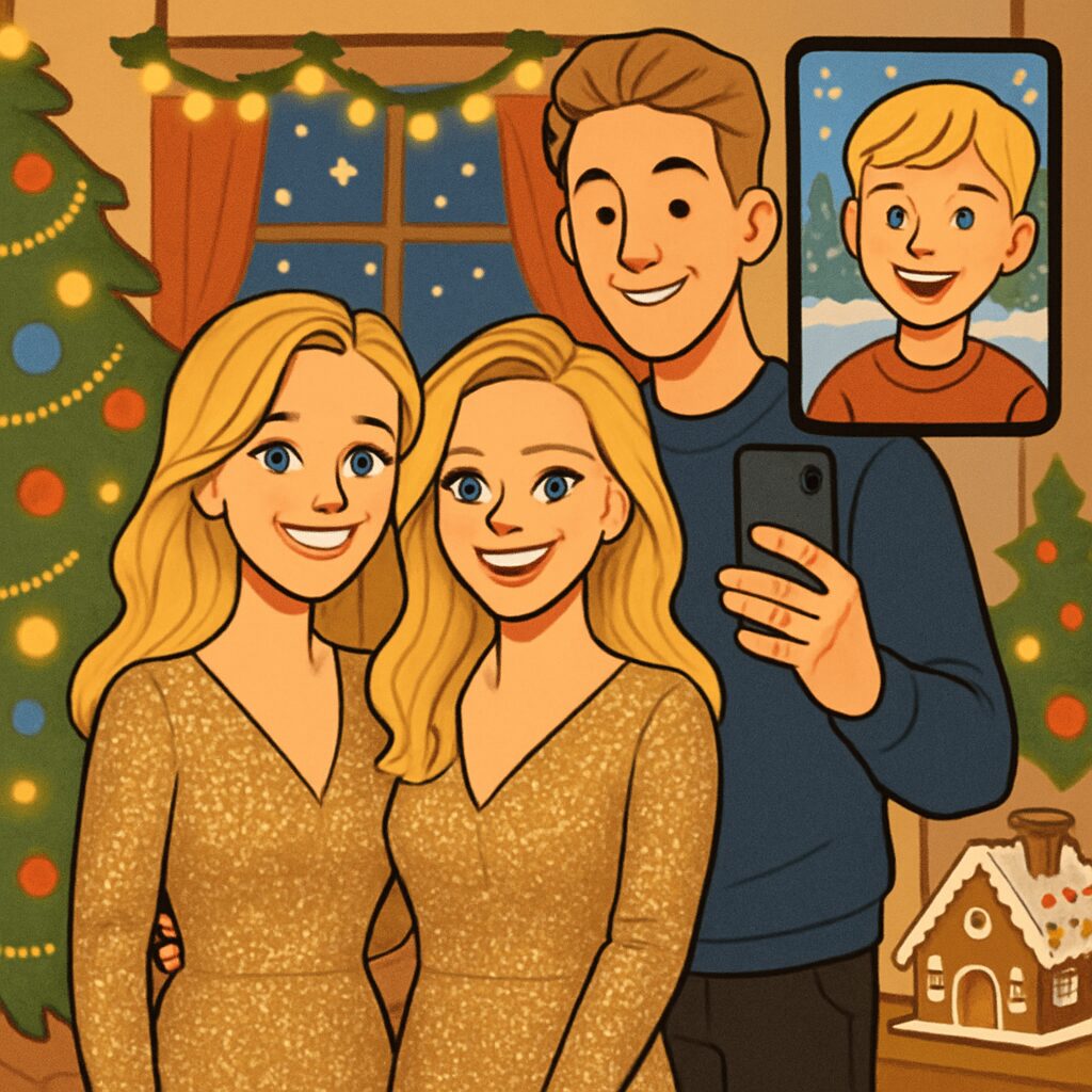 In the photos, Witherspoon is seen posing with her 26-year-old daughter Ava Philippe, both dressed in matching shimmering outfits that highlighted their striking resemblance. Another image shows her with 22-year-old son Deacon Philippe, where he towers over her in a mirror selfie, both smiling broadly. The collection also includes a sweet Facetime screenshot with her youngest, 13-year-old Tennessee Toth, captured in a snowy setting, as well as shots of a decorated Christmas tree and a gingerbread house.