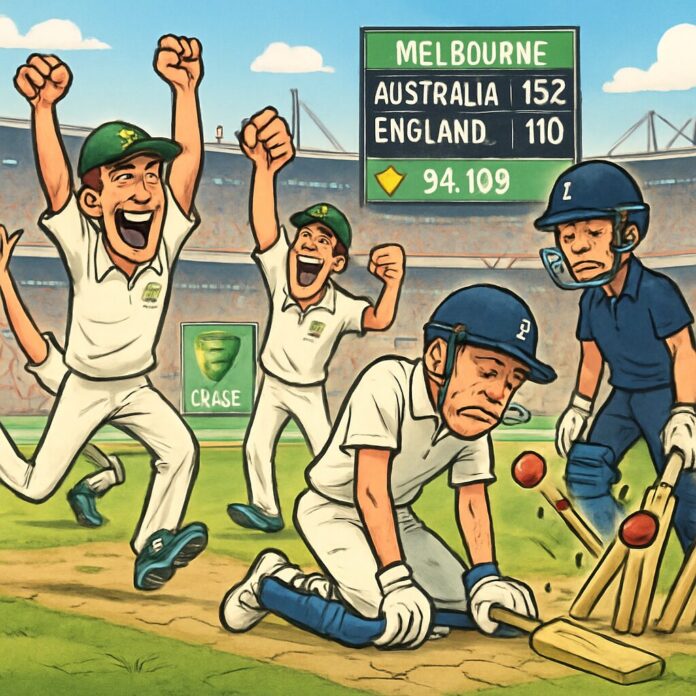 On a Boxing Day marked by cricketing mayhem, Australia were bowled out for 152 after England won the toss and elected to bowl. Josh Tongue was the standout for the tourists, claiming 5-45 with a disciplined length that troubled the Australian batsmen. Key wickets included Steve Smith, bowled by a superb delivery, and a collapse that saw Australia lose their last three wickets for no runs in four balls. England’s improved bowling performance, supported by efficient fielding, initially gave them the upper hand.