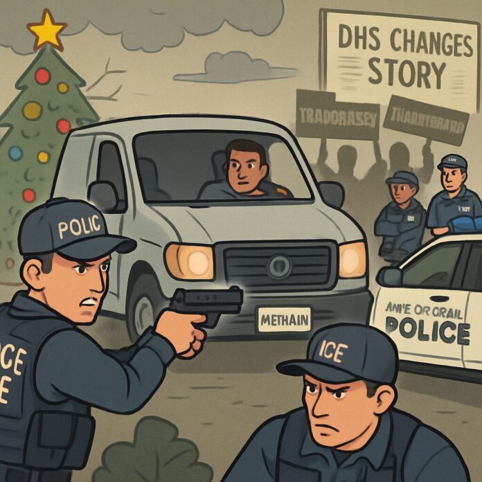 The Department of Homeland Security has backtracked on its initial account of a Christmas Eve shooting involving Immigration and Customs Enforcement officers in Maryland, amending key details after local police released information that contradicted the federal agency’s version of events. This revision comes amid heightened scrutiny over ICE’s use of force and transparency in operations under the Trump administration’s intensified immigration crackdown.