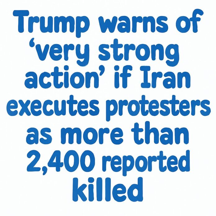 Trump warns of ‘very strong action’ if Iran executes protesters as more than 2,400 reported killed