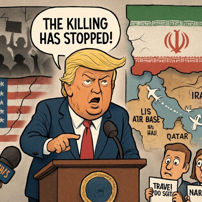 President Donald Trump declared on Wednesday that he has received assurances from credible sources that the Iranian regime has halted its killing of anti-government protesters, even as his administration continues to weigh military options in response to Tehran’s brutal crackdown. The announcement comes amid escalating tensions, with the U.S. evacuating non-essential personnel from a key air base in Qatar and multiple countries urging their citizens to leave Iran.