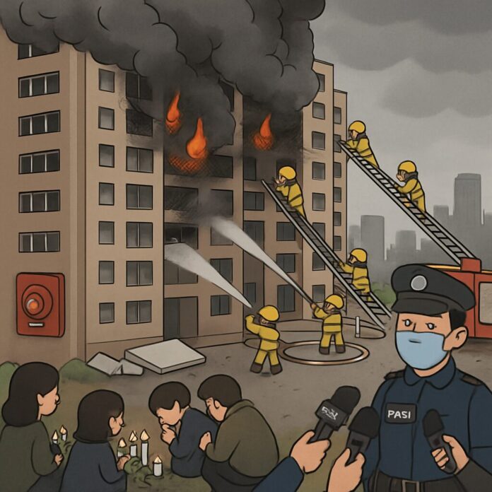The fire broke out on the afternoon of November 26, rapidly spreading across seven of the estate’s eight towers during a large-scale renovation. Officials attributed the blaze’s intensity and rapid spread to substandard mesh netting installed outside windows, polystyrene boards sealed to the structures, and failures in fire alarm systems. The inferno raged for more than a day, requiring thousands of firefighters to bring it under control, in a response that highlighted the scale of the disaster.