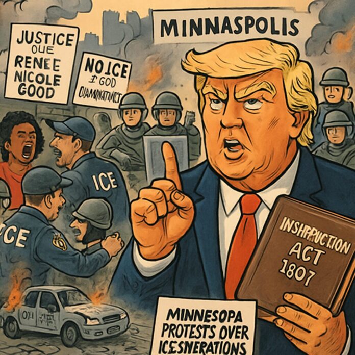 President Donald Trump has threatened to invoke the Insurrection Act to deploy military forces in Minneapolis, Minnesota, in response to ongoing protests against federal immigration enforcement operations. The threat follows a night of violent clashes and a shooting incident involving ICE agents.