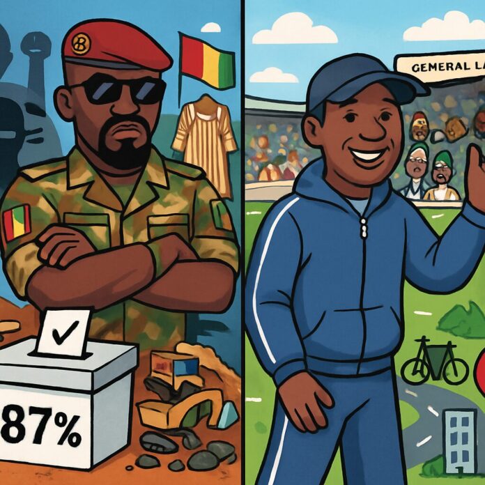 Doumbouya’s image has evolved notably from camouflage to tracksuits and baseball caps, curating a more civilian-friendly persona through social media and public appearances. Analysts like Beverly Ochieng note this as an effort to distance himself from his coup origins and appeal to the people, though some, such as researcher Aïssatou Kanté, question the sincerity given ongoing military influence. His administration has emphasized action, showcasing infrastructure projects and cycling through Conakry to portray a hands-on leader.