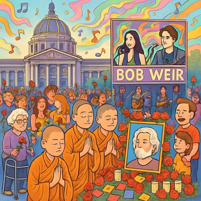 Thousands of fans and mourners gathered in San Francisco on Saturday to celebrate the life of Bob Weir, the iconic Grateful Dead guitarist who died last week at the age of 78. The event, held at the city’s Civic Center, drew a diverse crowd of longtime Deadheads and new admirers, all united in paying tribute to a musician whose work spanned decades and defined a generation.