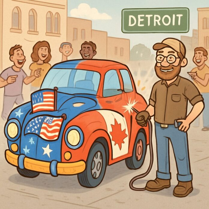 In a light-hearted fusion of automotive engineering and cross-border symbolism, a Detroit mechanical engineer has welded together the front ends of two Chrysler vehicles to create a car that is half-American and half-Canadian, drawing smiles and attention on the streets of Motor City.