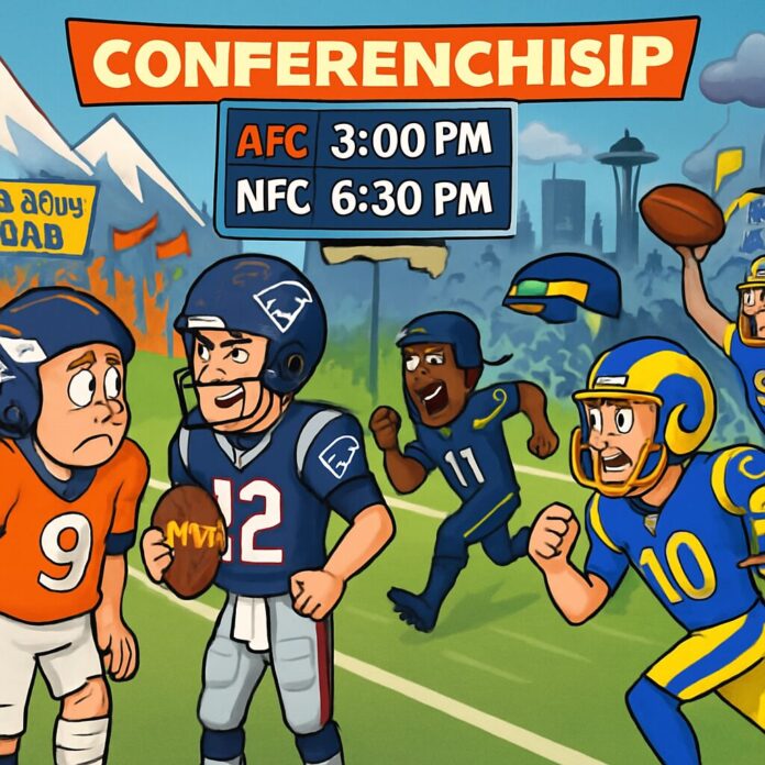 This weekend’s NFL Conference Championships feature the Denver Broncos hosting the New England Patriots in the AFC and the Seattle Seahawks facing the Los Angeles Rams in the NFC, with key injuries and player matchups shaping the road to Super Bowl LX. The games promise high-stakes football as four teams vie for a spot in Santa Clara.