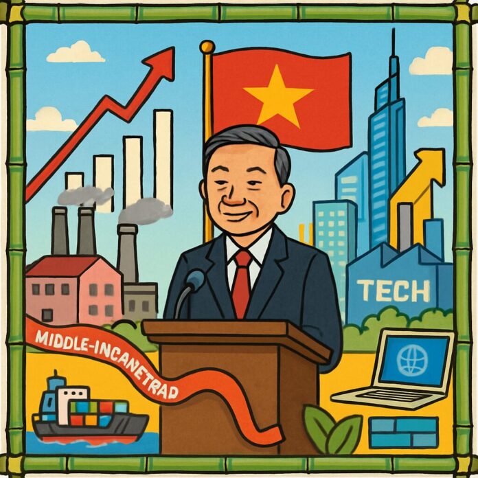 Vietnam’s Communist Party General Secretary To Lam was reappointed for another five-year term on Friday, pledging to implement bold economic reforms designed to elevate Vietnam to upper-income status by 2045. His leadership now focuses on transforming the country’s economy through increased private sector engagement and global competitiveness.