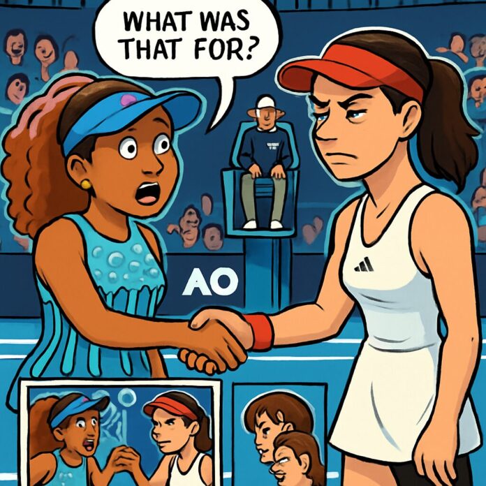 Naomi Osaka secured a spot in the third round of the Australian Open with a hard-fought 6-3, 4-6, 6-2 victory over Sorana Cirstea, but the match concluded with a notably cold handshake that sparked immediate controversy. As the players met at the net, Cirstea offered only a perfunctory grasp before turning away, prompting Osaka to ask aloud, ‘What was that for?’—a moment captured on broadcast and quickly circulated across sports media.