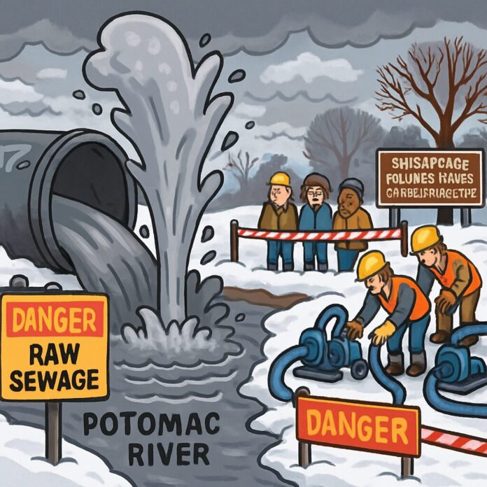 Massive sewage spill flowing into Potomac River upstream from Washington