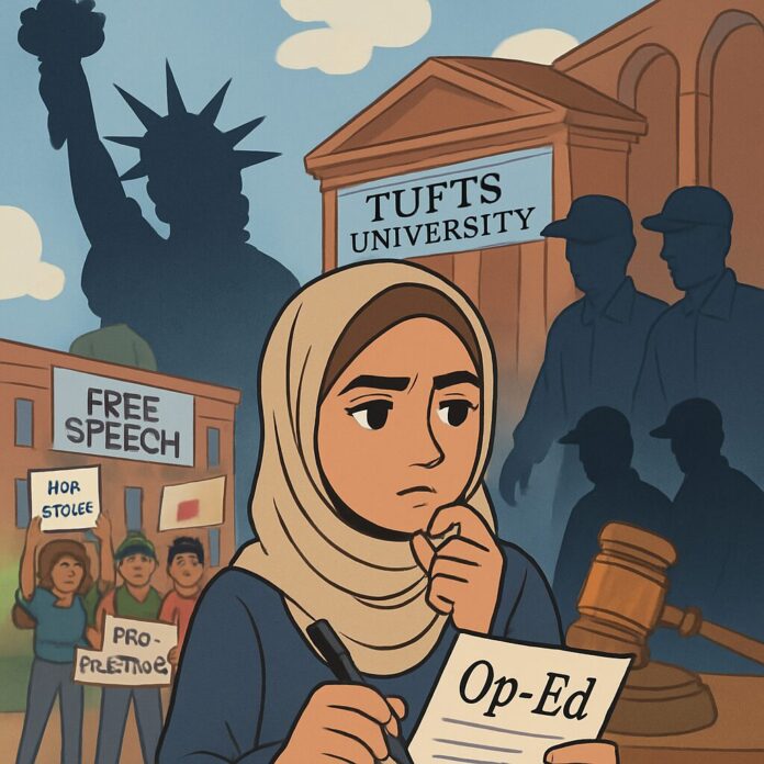 Newly unsealed court documents reveal that the Trump administration detained Tufts University doctoral student Rümeysa Öztürk and revoked her visa primarily because of an op-ed she co-authored criticizing Israel, with internal memos showing no evidence of terrorist activity or antisemitism. Rümeysa Öztürk, a 30-year-old Turkish national pursuing a PhD at Tufts, was arrested on March 25, 2025, after her F-1 student visa was revoked by the State Department. The arrest occurred outside her home by plainclothes officers, and she was held in immigration detention in Louisiana for 45 days. Her detention followed the publication of an opinion piece in the Tufts student newspaper that criticized the university’s response to pro-Palestinian activism and called for divestment from companies with ties to Israel.