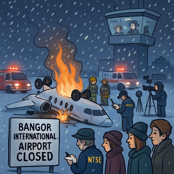 A private jet crashed during takeoff from Bangor International Airport in Maine on Sunday night, resulting in six presumed fatalities amid a snowstorm, with federal and local authorities investigating the incident. The disaster has sparked confusion over the death toll but underscores the tragic loss in one of the region’s worst aviation accidents.