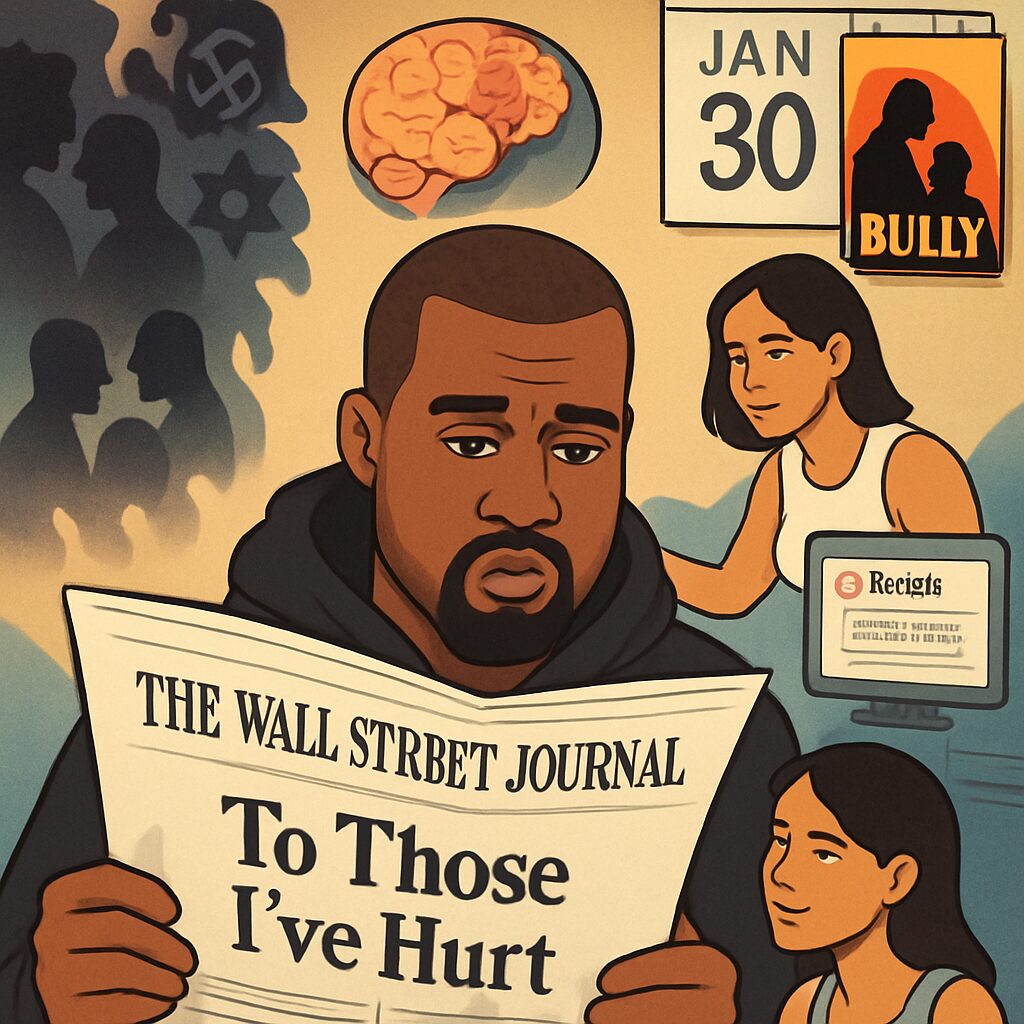Kanye West, now known as Ye, has issued a sweeping public apology for his antisemitic and offensive remarks through a full-page advertisement in The Wall Street Journal, attributing his behavior to bipolar disorder exacerbated by a 2002 car accident.