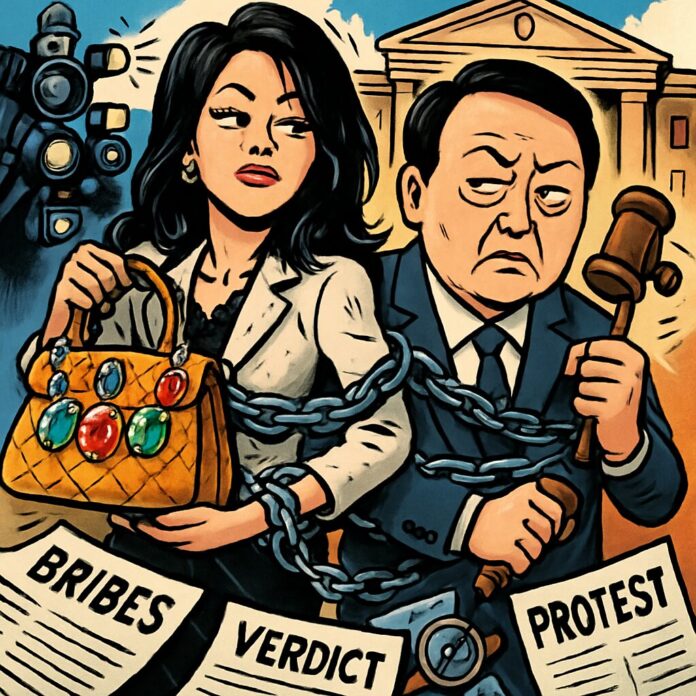 Kim Keon Hee, the former first lady of South Korea, has been sentenced to 20 months in prison for accepting bribes from the Unification Church, capping a series of scandals that have ensnared both her and her disgraced husband, ex-President Yoon Suk Yeol. This verdict marks an unprecedented moment in South Korean history, as it is the first time a presidential spouse has been jailed while detained, alongside her husband who was recently sentenced for abuse of power.
