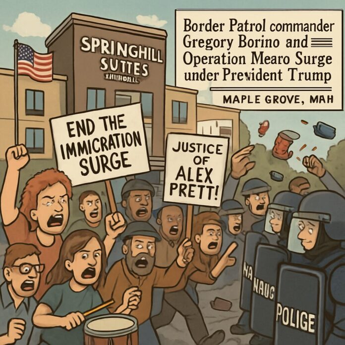 On January 26, 2026, approximately a hundred protesters assembled outside the SpringHill Suites by Marriott in Maple Grove, Minnesota, where Bovino was suspected to be lodged. They banged drums and chanted, demanding his departure from the city. Police reported that several individuals were taken into custody after the situation escalated, with property damage and objects thrown at officers, leading to a dispersal order.