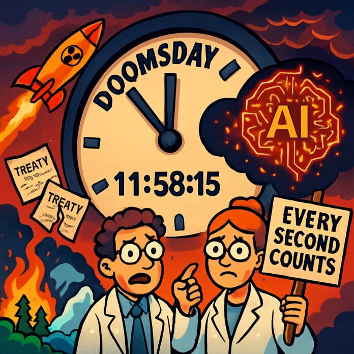 Atomic scientists have moved the Doomsday Clock to 85 seconds to midnight, the closest it has ever been to symbolic global catastrophe, citing escalating threats from nuclear weapons, climate change, and artificial intelligence. This adjustment, announced on Tuesday, underscores the urgent need for international action to address existential risks that endanger humanity.