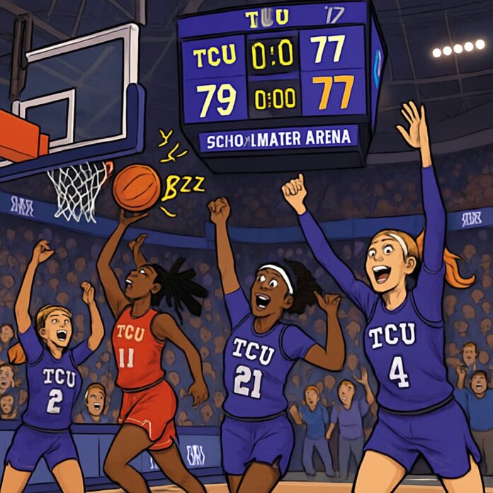 The No. 12 TCU Horned Frogs women’s basketball team narrowly defeated the Kansas Jayhawks 79-77 on January 29, 2026, in a Big 12 conference game that came down to the final seconds when Kansas failed to attempt a tying layup before time expired.