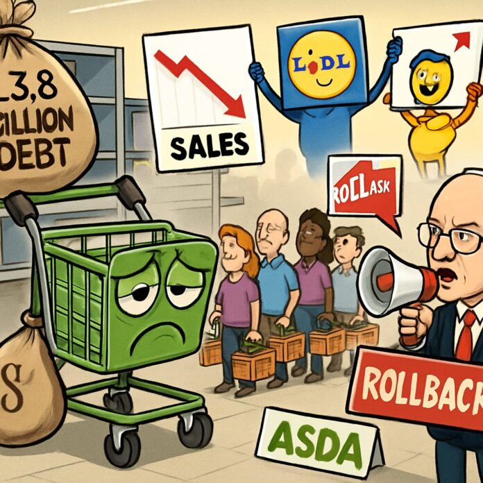 Asda, the UK’s third-largest supermarket chain, faces a critical challenge after a dismal Christmas 2025, suffering a 4.2% sales drop while competitors gained ground, amid fierce competition from discounters Aldi and Lidl. This decline marks the 22nd consecutive month of falling revenues, highlighting a struggle to reclaim market share as shoppers, hit by rising bills, increasingly turn to cheaper alternatives.