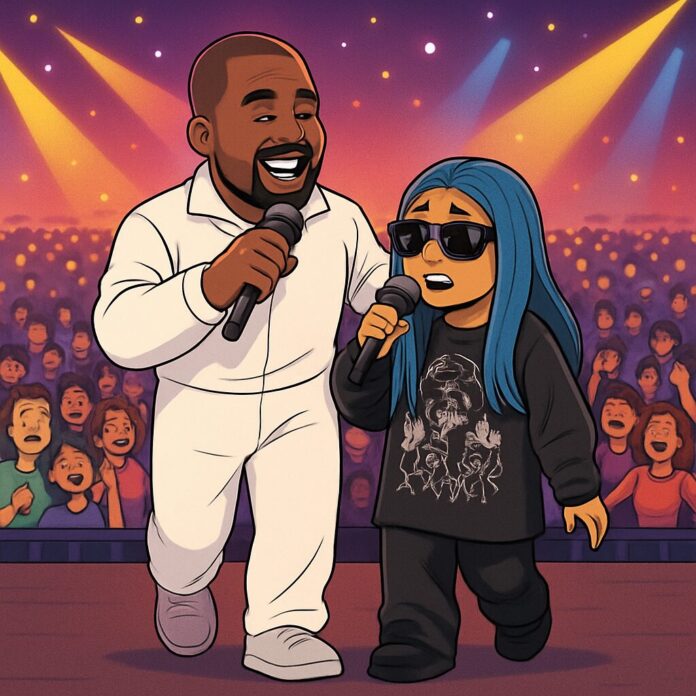 North West, adorned with her signature blue hair, took the stage in an oversized all-black ensemble, while Kanye wore a contrasting all-white jumpsuit. Social media clips captured the pair walking together before launching into their performance, with Kanye singing lyrics such as, “You know, I never left you,” and North joining in with her part of the song. The father-daughter interaction was seamless, highlighting North’s growing confidence onstage.