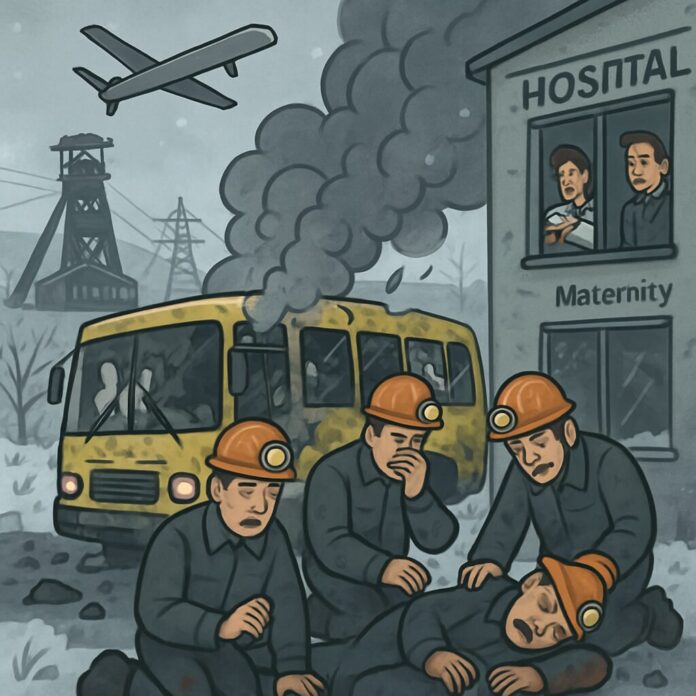 A Russian drone strike killed at least 12 miners in eastern Ukraine on Sunday, officials reported, underscoring the continued brutality of the conflict even as temporary pauses were announced. The attack targeted a bus carrying workers from a DTEK mine, with several others injured in the assault.