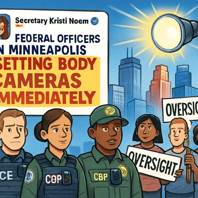 U.S. Department of Homeland Security Secretary Kristi Noem announced on social media platform X that federal law enforcement officers in Minneapolis will begin using body cameras immediately, a move aimed at enhancing transparency amid ongoing controversies over agent-involved shootings. “Effective immediately we are deploying body cameras to every officer in the field in Minneapolis,” Noem said in the post, adding that the rollout is contingent on funding availability.