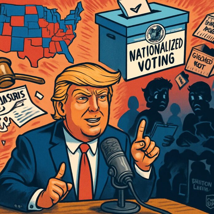 President Donald Trump has called on Republicans to “nationalize” elections, urging a federal takeover of voting processes in at least 15 states during a podcast appearance, while repeating disproven claims of voter fraud. This dramatic escalation challenges state control over elections and has sparked legal and political debates.
