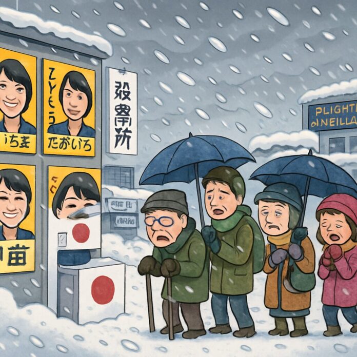 The election is taking place under unusual circumstances, with heavy snowfall across northern and eastern Japan disrupting transportation and potentially affecting voter turnout. According to reports, 37 train lines and 58 ferry routes were closed, and 54 flights were canceled due to the weather, while early voting numbers showed a 2.5% drop from the previous election in 2024. Despite these challenges, many voters, particularly younger ones, have expressed determination to participate, citing the election’s importance for Japan’s future.